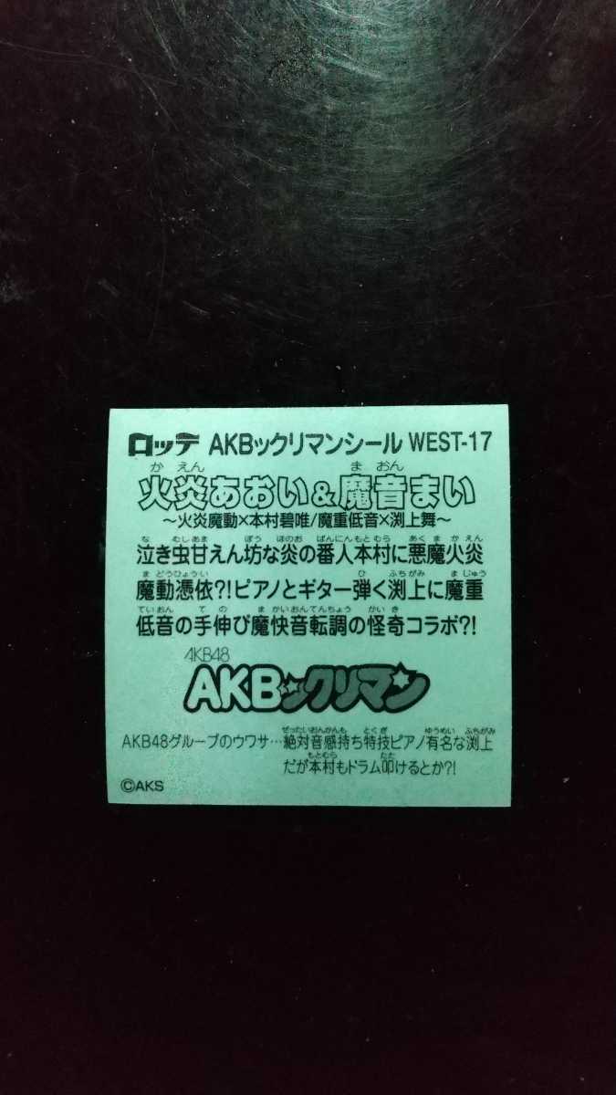 AKBックリマン火炎あおい&魔音まいのになります。カードスリーブと硬質のカードケースに入れて発送いたします。新品になりますのでノークレーム、ノーリターン、ノーキャンセルでお願いします。