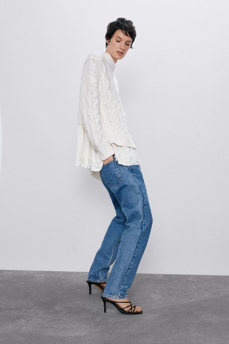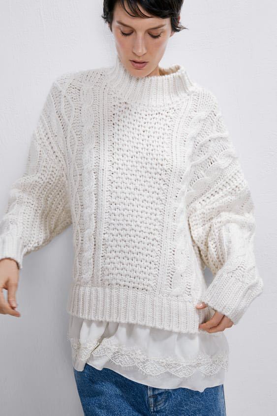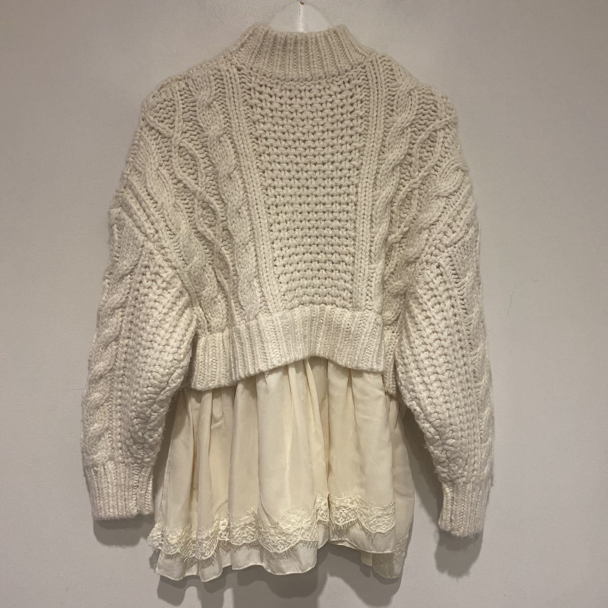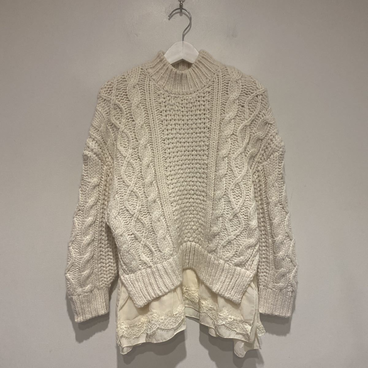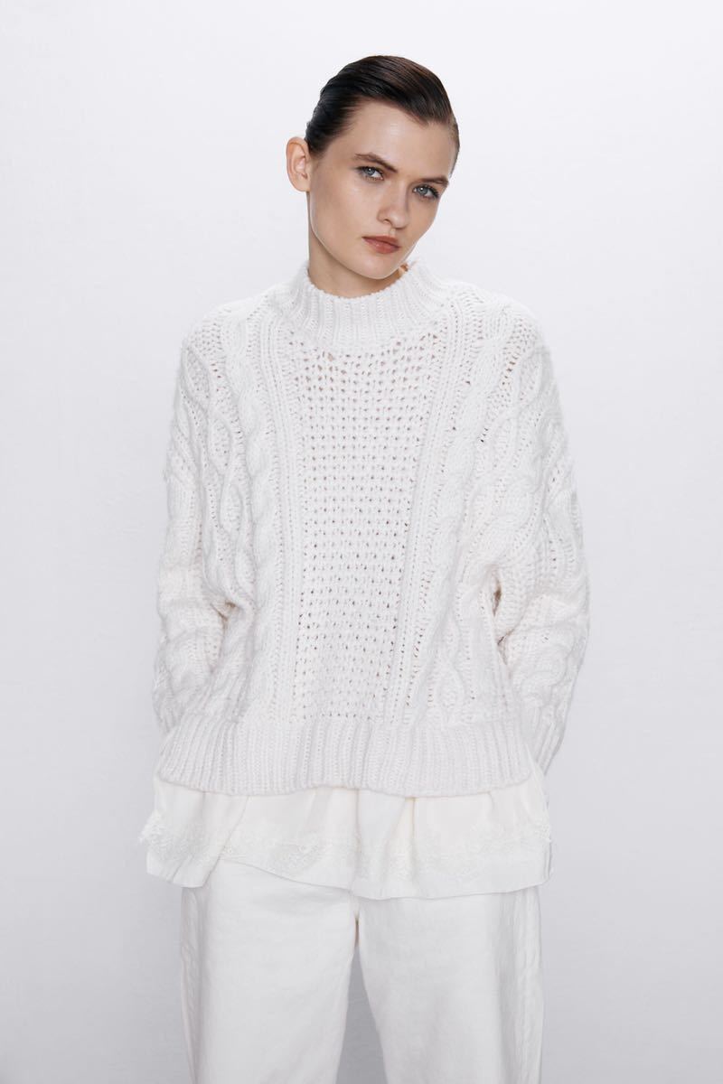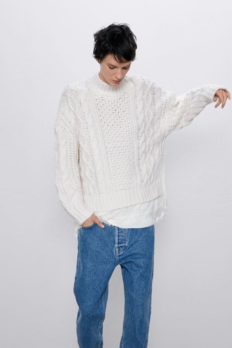 【美品】ZARA ザラ ニット セーター ケーブルニット ホワイト レース トップス サイドカット S