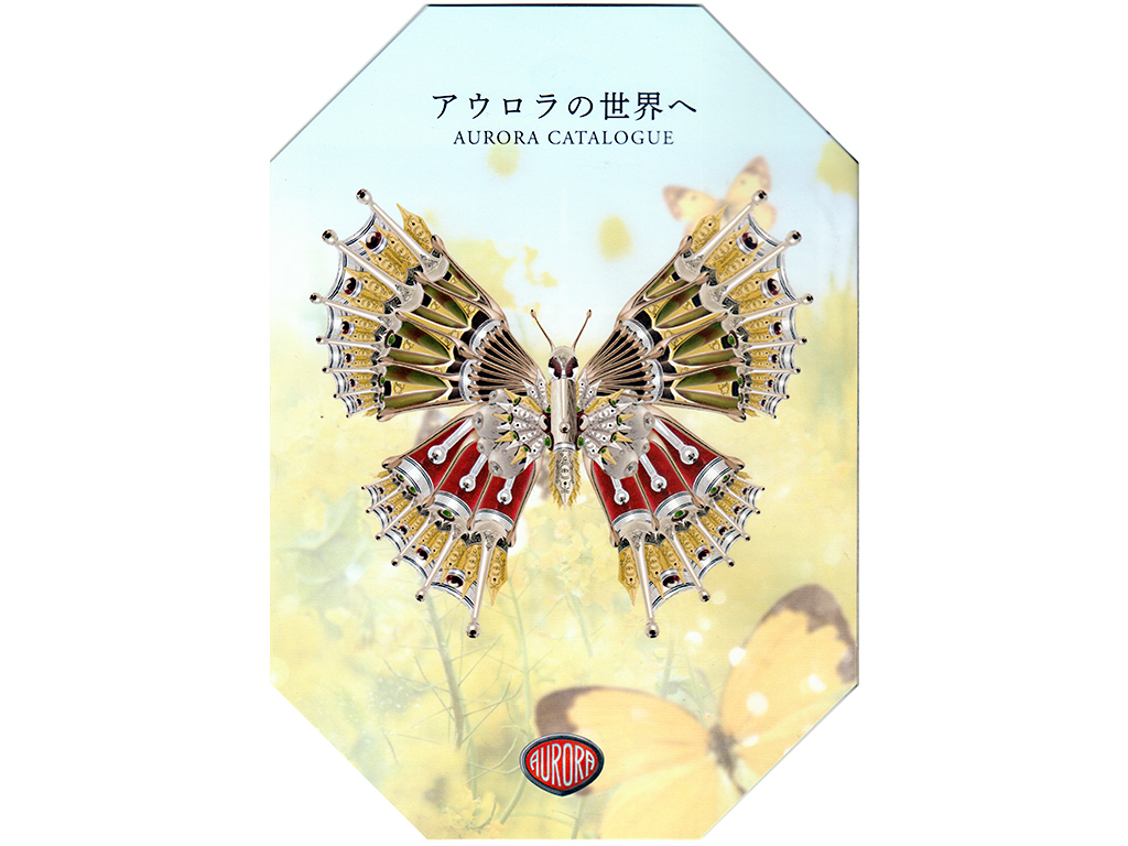 〇見開き時に「蝶」の羽の形状を模した?ユニークな判型の「アウロラ AURORA 」の筆記具カタログ【アウロラの世界へ】。