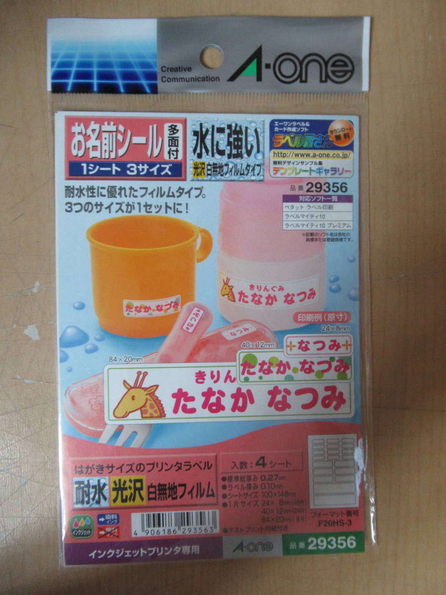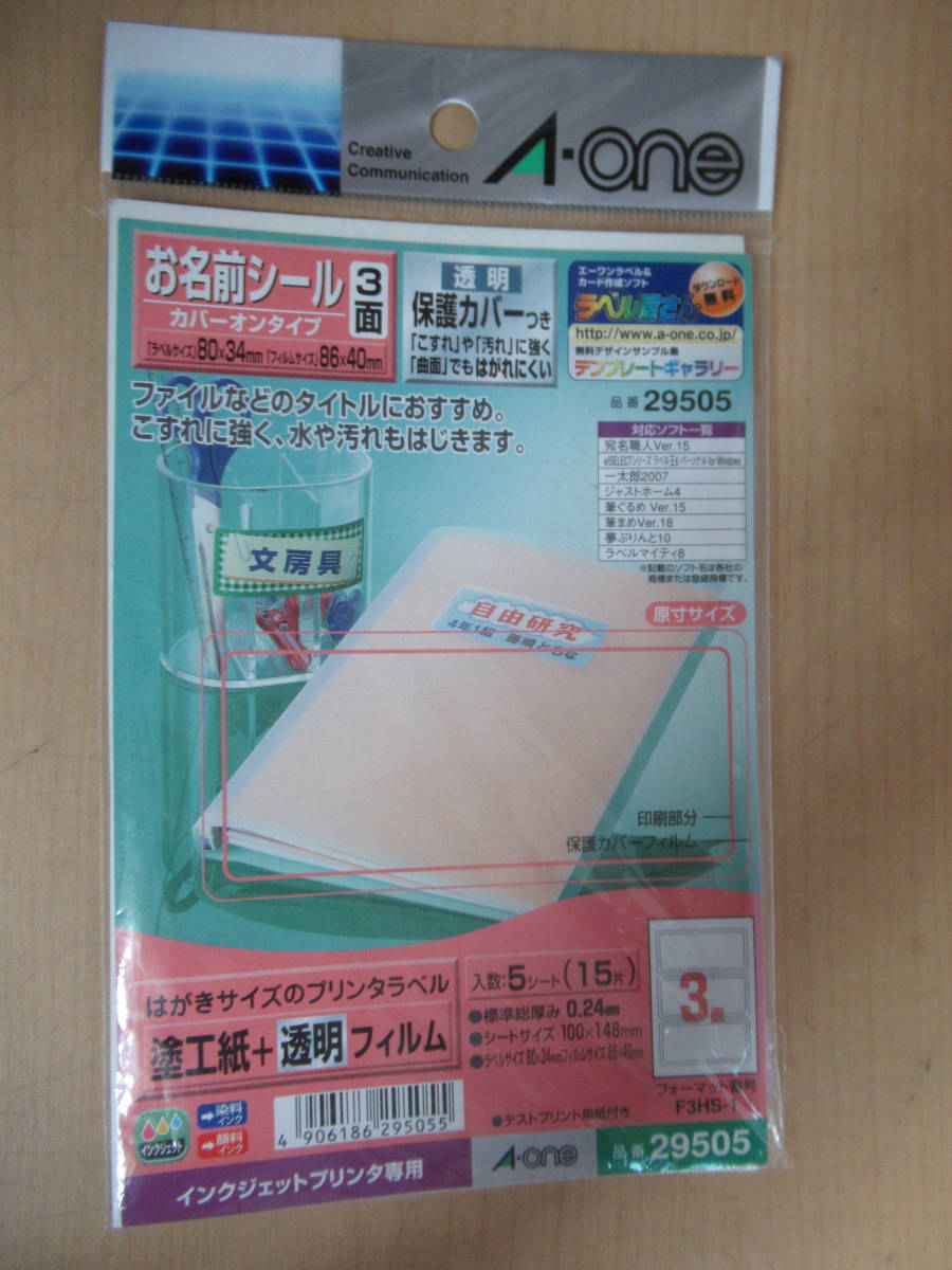 お名前シール通常タイプ 品番:29505 [カバーオンラベル プリンタブル ネーム用 3面 5シート]未使用4シート+中古1シート※注意:保護シートなし