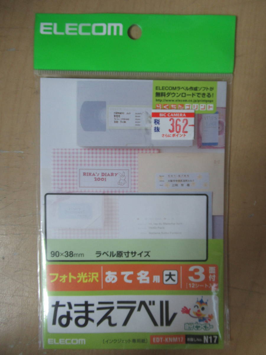 なまえラベル ~あて名用・大~ EDT-KNM17 NO17[3面:12シート入:36枚・フォト光沢]×未使用9シートのみ