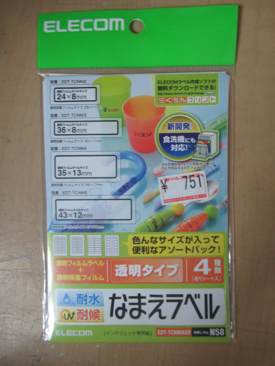 耐水耐候なまえラベル アソートパック 透明 EDT-TCNMASO NO58 [4種類各1シート入 /透明フィルム]未使用品×1点