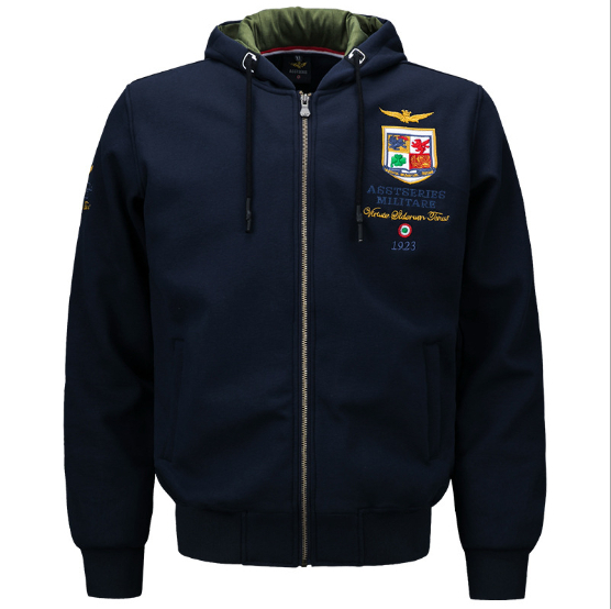 新品即決☆ 超人気高品質 長袖ジップアップパーカー /パーカ 刺繍入り ☆メンズ 日本未販売 AF-1 8613 ネイビー サイズ L