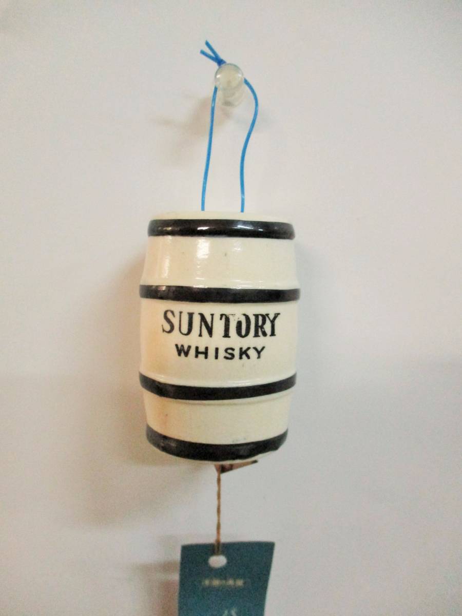 昭和レトロ 希少 洋酒の寿屋 サントリー ウイスキー ロゴ入り 風鈴 非売品 ノベルティ 当時物 陶器 酒樽モチーフ