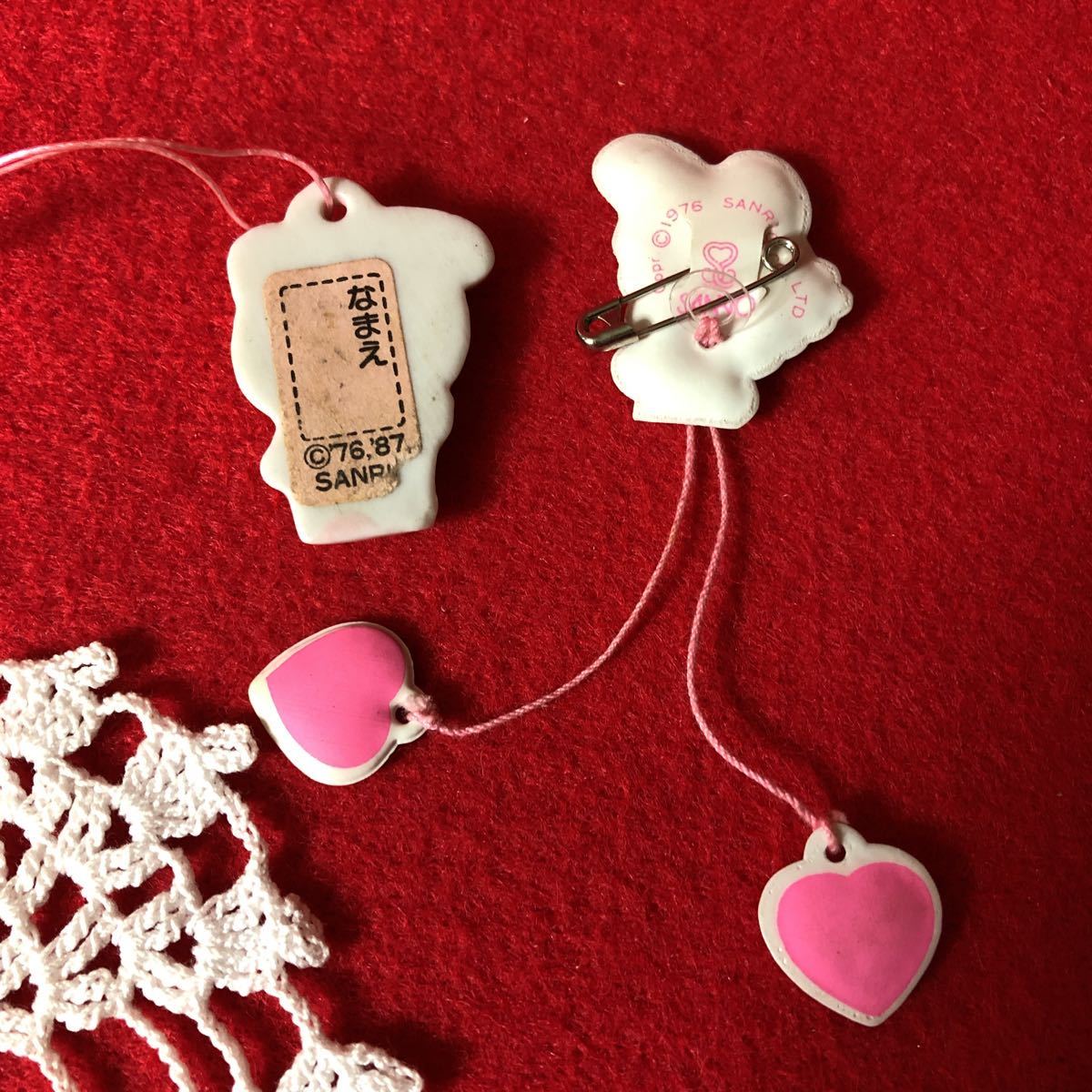 マイメロディ◇サンリオプレミアム◇おまけ◇1976年◇1987年◇バッチ バッジ◇陶器製◇旧ロゴ◇レトロ 当時物 昭和◇サンリオ