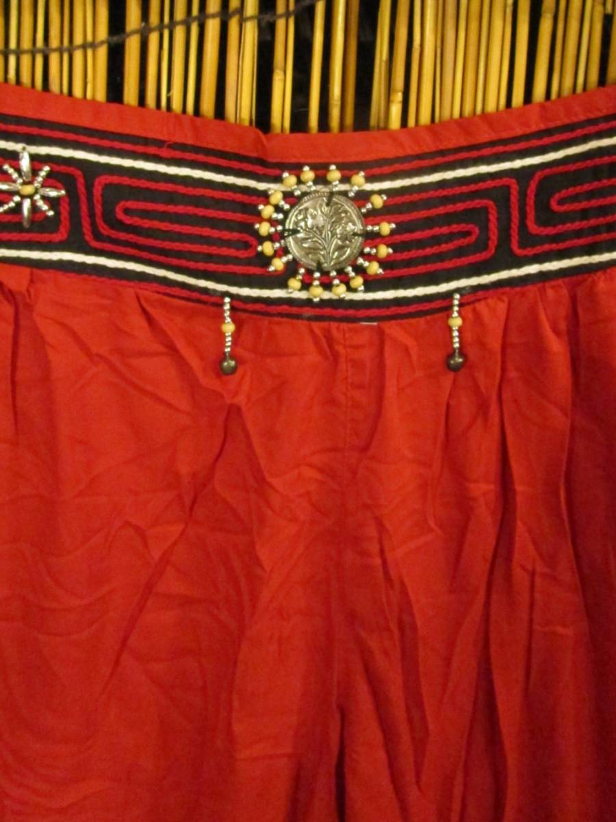【送料込み/SALE】④新品*レーヨン素材*ゆったりサイズ*ウエスト刺繍+鈴付き*U字*楽々パンツ エスニック アジアン MAJAM