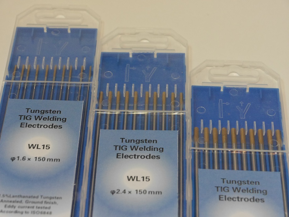 ランタンタングステン電極WL15は、1.30%から1.70%のランタニア(酸化ランタン)を含む非放射性タングステン電極で、点火性能、アークの安定性、電極の消耗など溶接特性はトリウムタングステン電極に肉薄するほど優れており、トリウムタングステン電極での溶接条件を変更することなく代替可能です。主に直流溶接に用いられますが直流交流共使用可能です。ランタニア含有量が多いほど点火性能などが向上します。