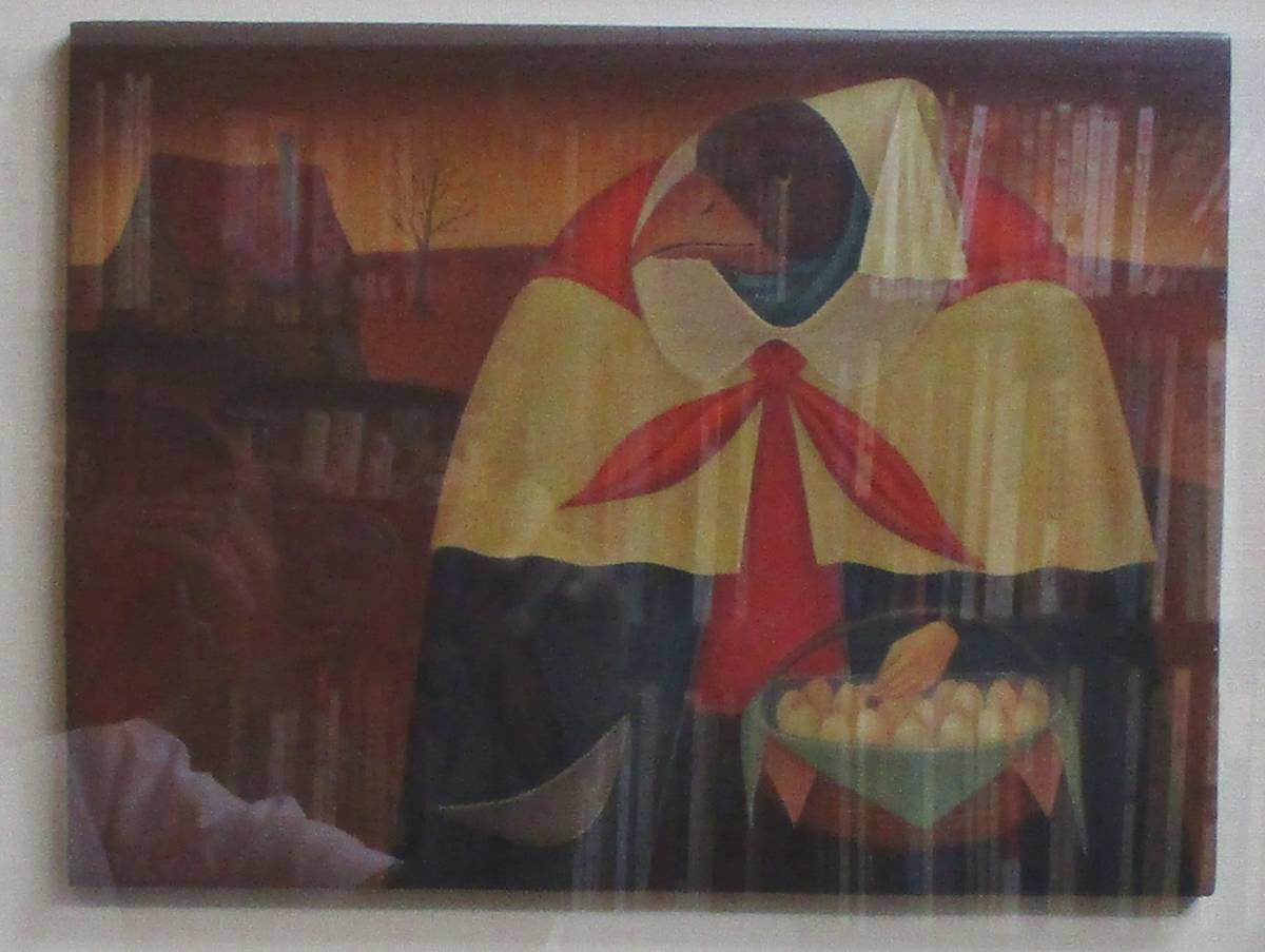 宮崎次郎「偽人鳥」(物々交換)1993年 板に油彩(テンペラ)