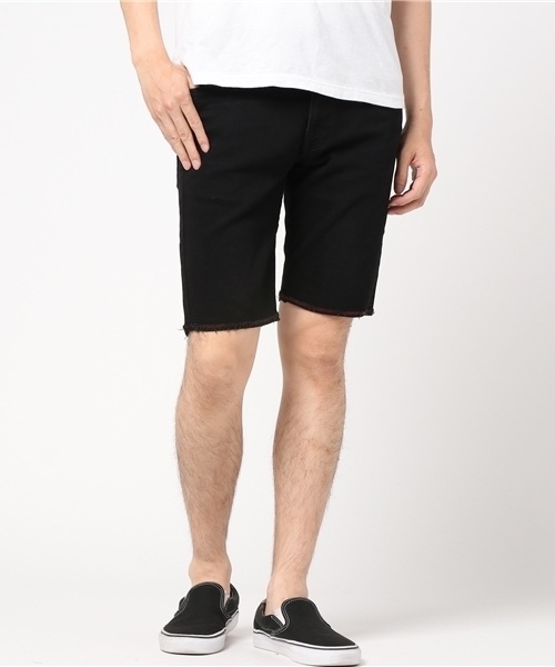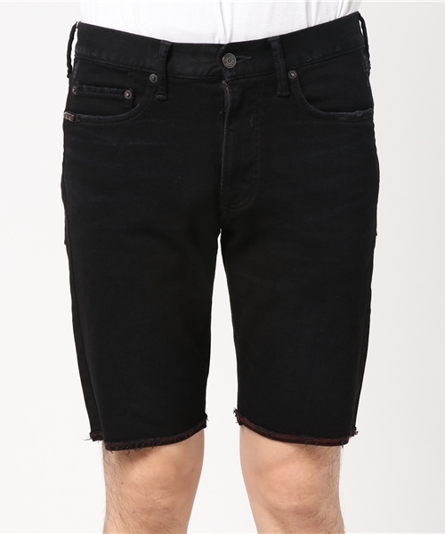 スリムなストレートパンツを膝から切り赤い千鳥ステッチを飾ったデザインでどこかロックな雰囲気を持つショートストレッチパンツ。バックヨークやヒップ、ポケットのデザイン・バランスにも細部までこだわりロックなイメージとタイトなシルエットが強調されるよう設計されています。また程よいストレッチが入り、履き心地も抜群です。