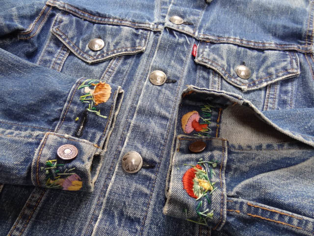 ビンテージ LEVIS リーバイス 希少 70S 70505 ビッグE コンチョ ボタン アート 刺繍 カスタム デニム ジャケット ジージャン レア 557 硬貨