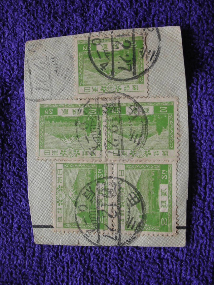 消印 オンピース 風景富士 2銭 5枚貼り 櫛型 三田10.12.27