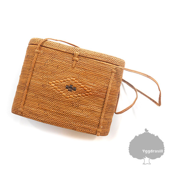 YGG★かごバッグ 円筒型 ショルダーバッグ 茶 ブラウン ナチュラル バケツ ハンドバッグ カバン 夏 リゾート ストロー