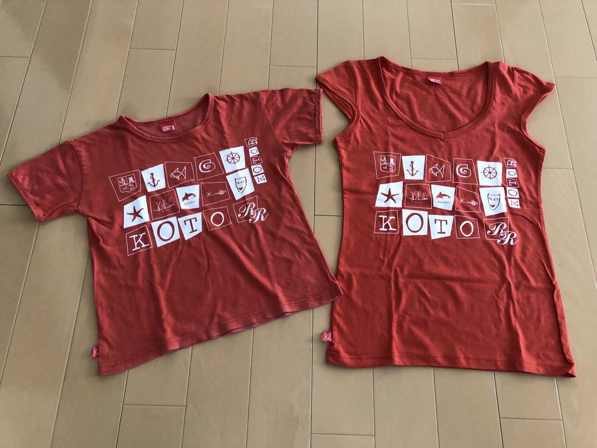 親子コーデができる同じ色、プリントのレディースのVネックTシャツや
