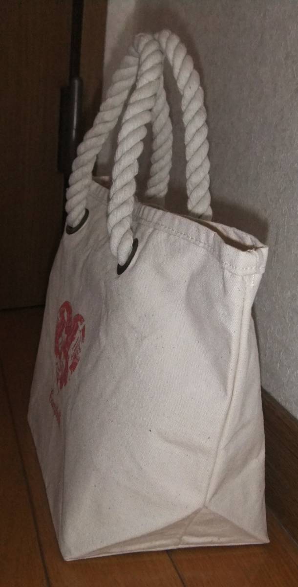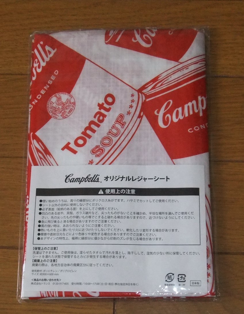 キャンベルの缶詰を購入した時にいただいた、持ち手がロープのトートバッグとレジャーシート、どちらも新品です。
