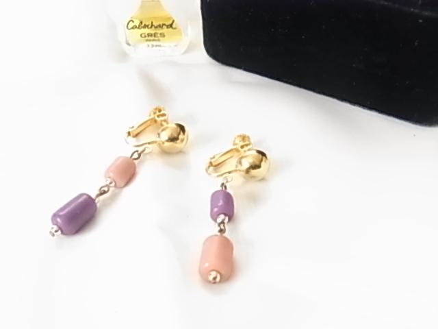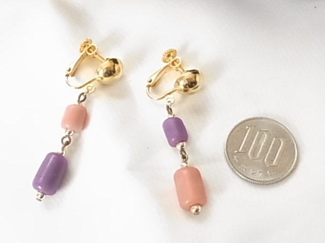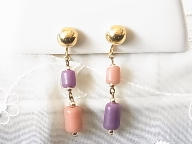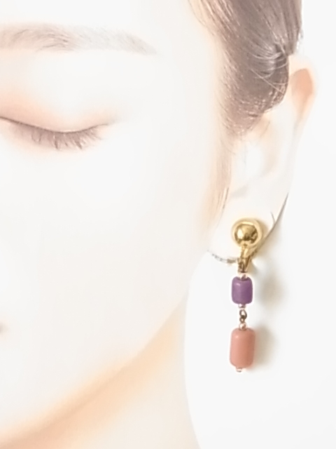 サーモンカラーとパープルカラー 左右で色が交互で素敵 品質不明 耳元で揺れ動く可愛らしいデザインのイヤリング◆