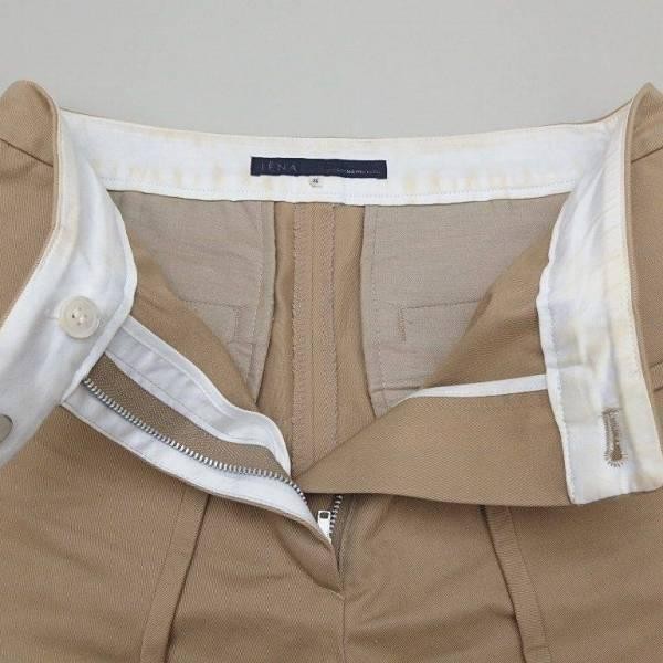 状態説明 | ウェスト内側にシミ・汚れ、表面に色落ちが数ヶ所、左裾上に引っ掻けがあります。 |