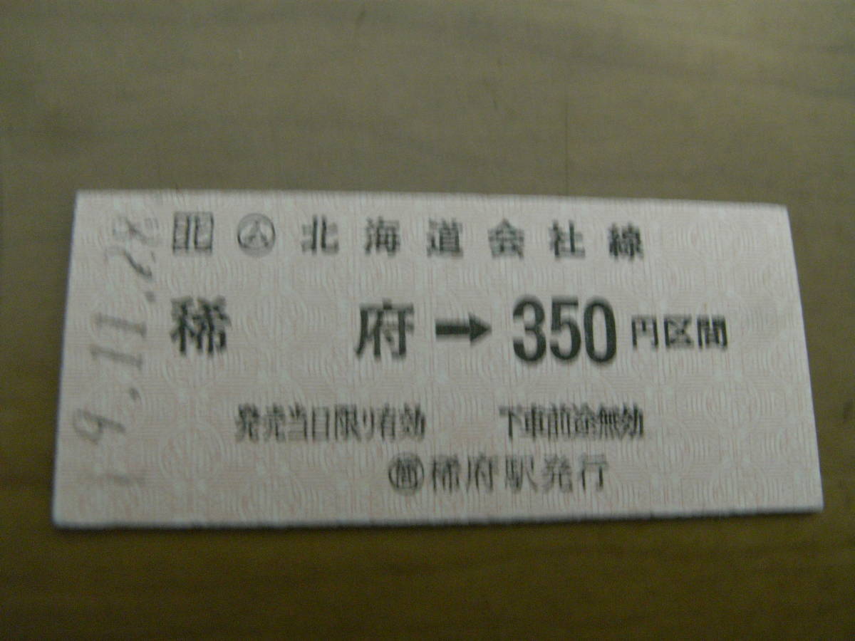 室蘭本線 ム稀府→北海道会社線350円区間 平成9年11月28日 簡 稀府駅発行