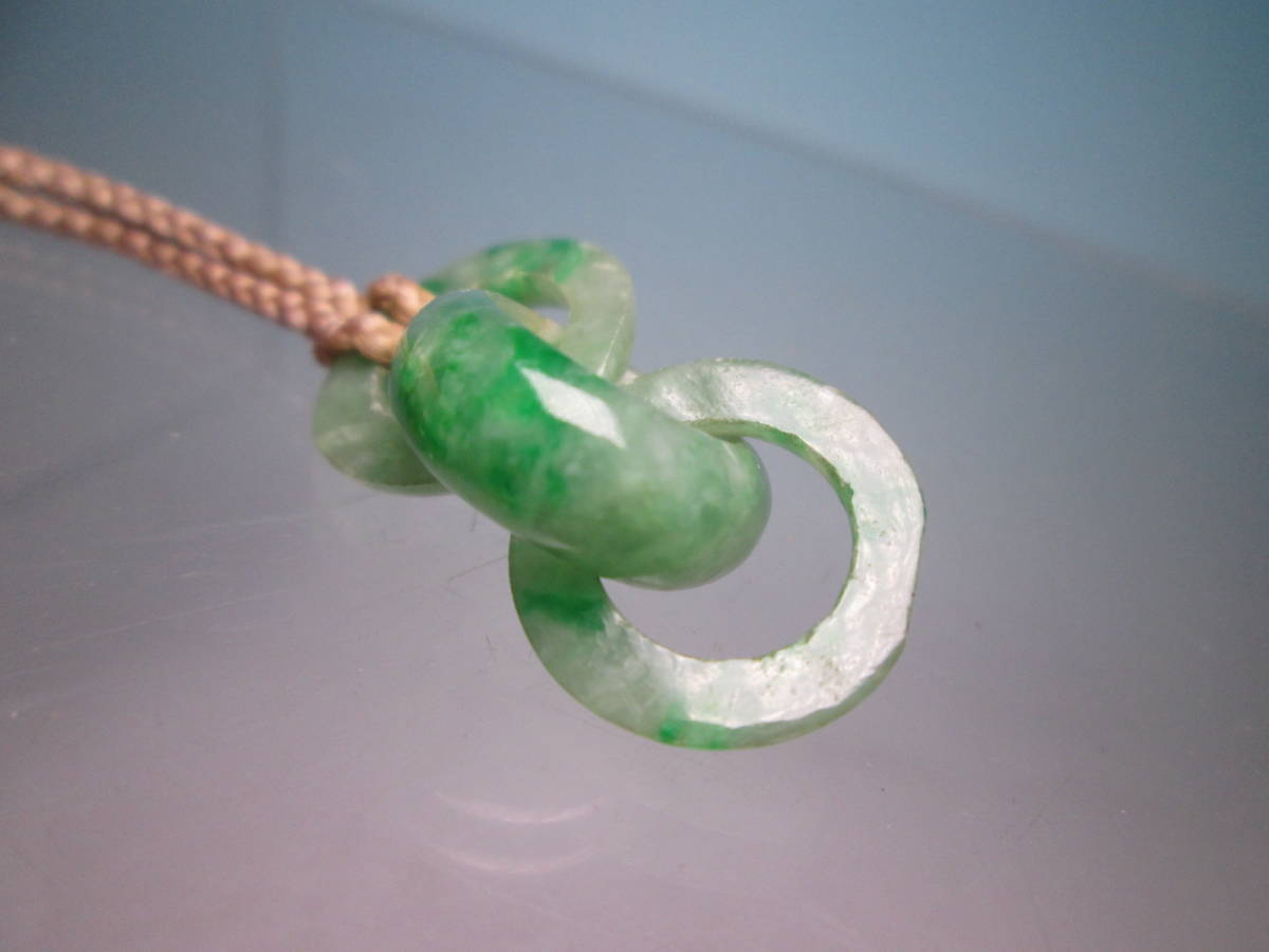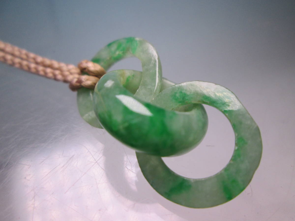 【江月】 アンティーク・本翡翠の環三ツ輪の帯留め 4,7g