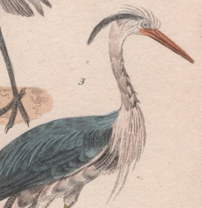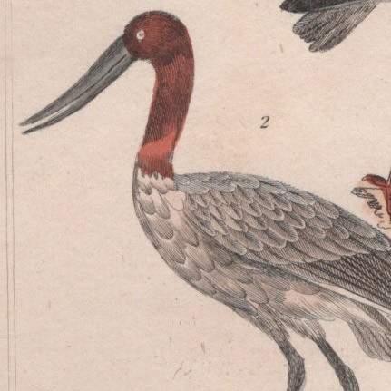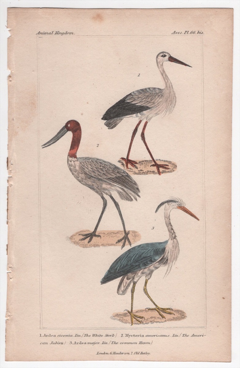 1837年 Cuvier Animal Kingdom 手彩色 鋼版画 コウノトリ科 シュバシコウ アメリカトキコウ サギ科 アオサギ 博物画