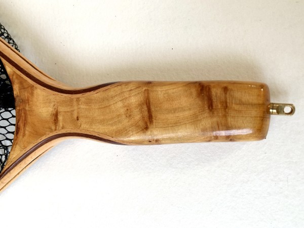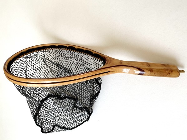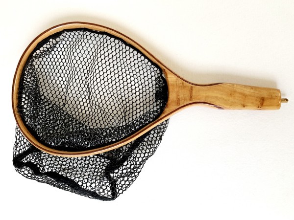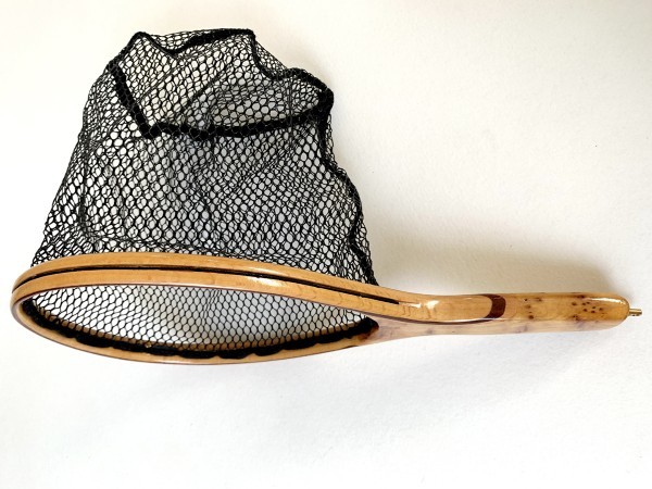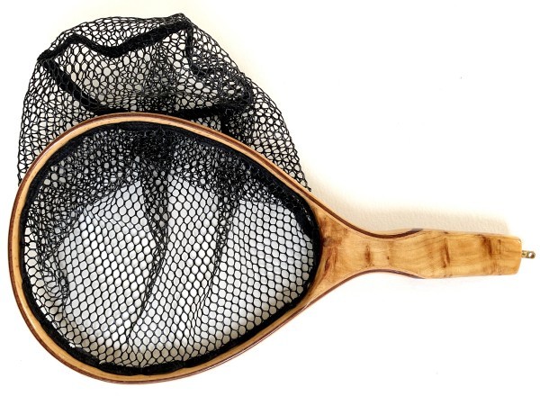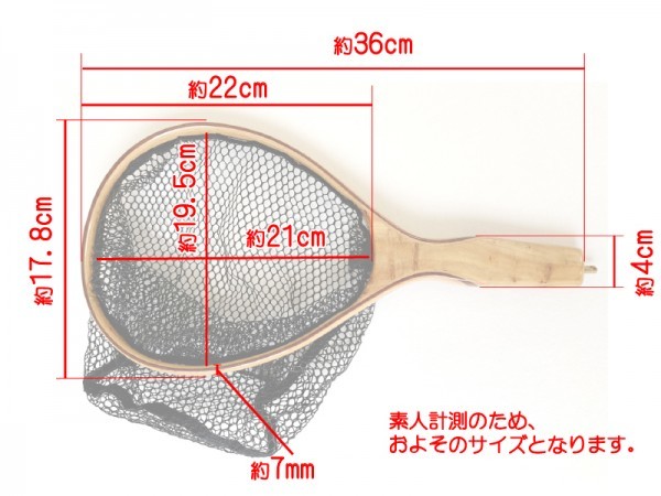 【新品】フライフィッシングネット 手作り 材質:黄金樟 全長:約36cm 網深さ:約24cm A