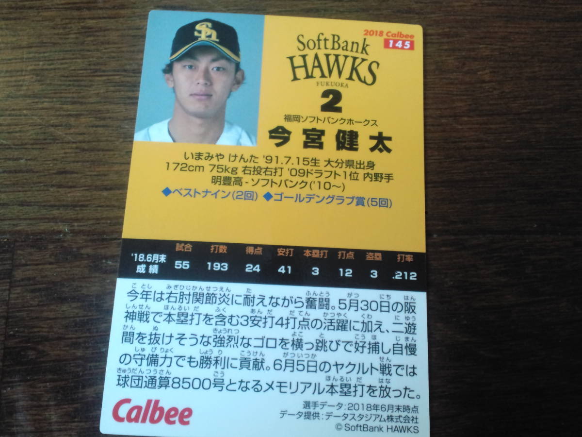 [同梱可]★今宮健太(福岡ソフトバンクホークス)☆レギュラーカード(145)★2018年カルビープロ野球カード第3弾☆