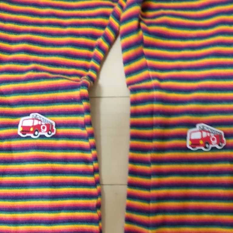 片方の膝に穴が開いたのを隠すために消防車のワッペンをアイロン接着して、カスタマイズしました。