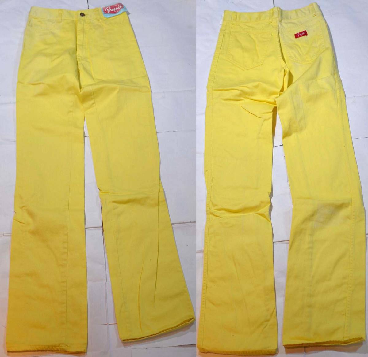 『状態』新品未使用。フラッシャー付きデッドストックです。ただし古いモデルで長年倉庫で保管していた商品です。多少の汚れ、キズなどはご容赦ください。 『その他』表記はありませんが、レディースで間違いないと思います。70年代ぐらいの品でかなり古いものと思います。入手先より40年ぐらい倉庫で眠っていたと聞きました。 非常に綺麗なパイプドストレートです。当時の定価6300円で、かなり高価な品です。