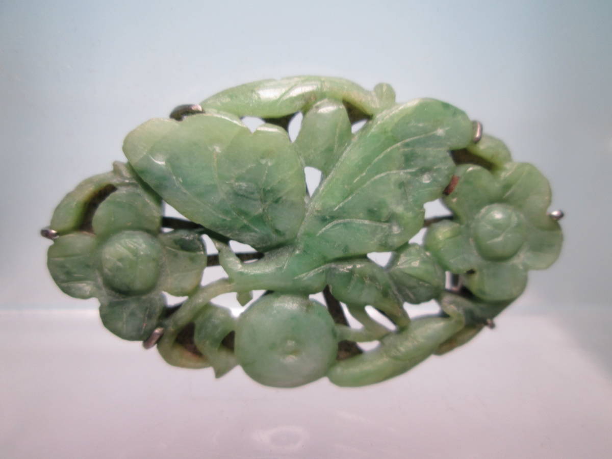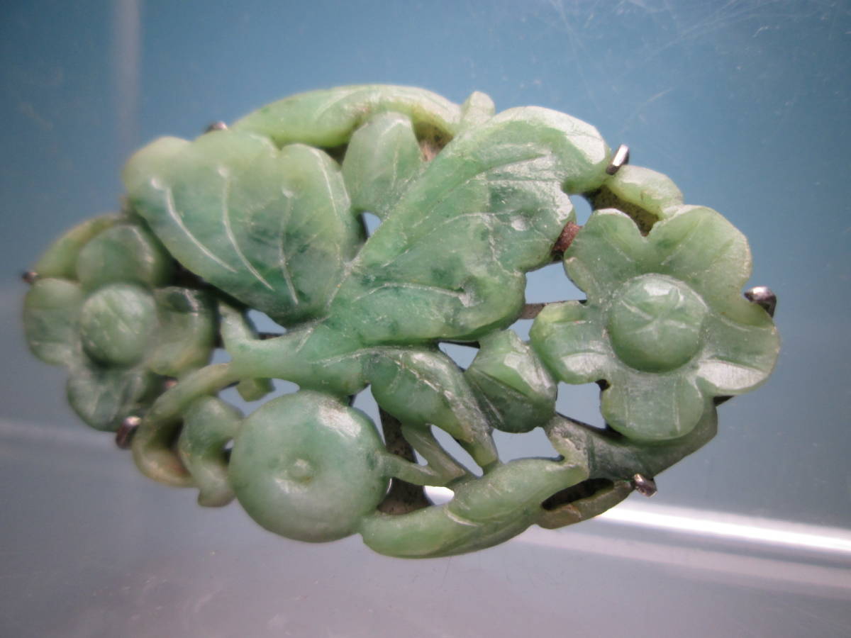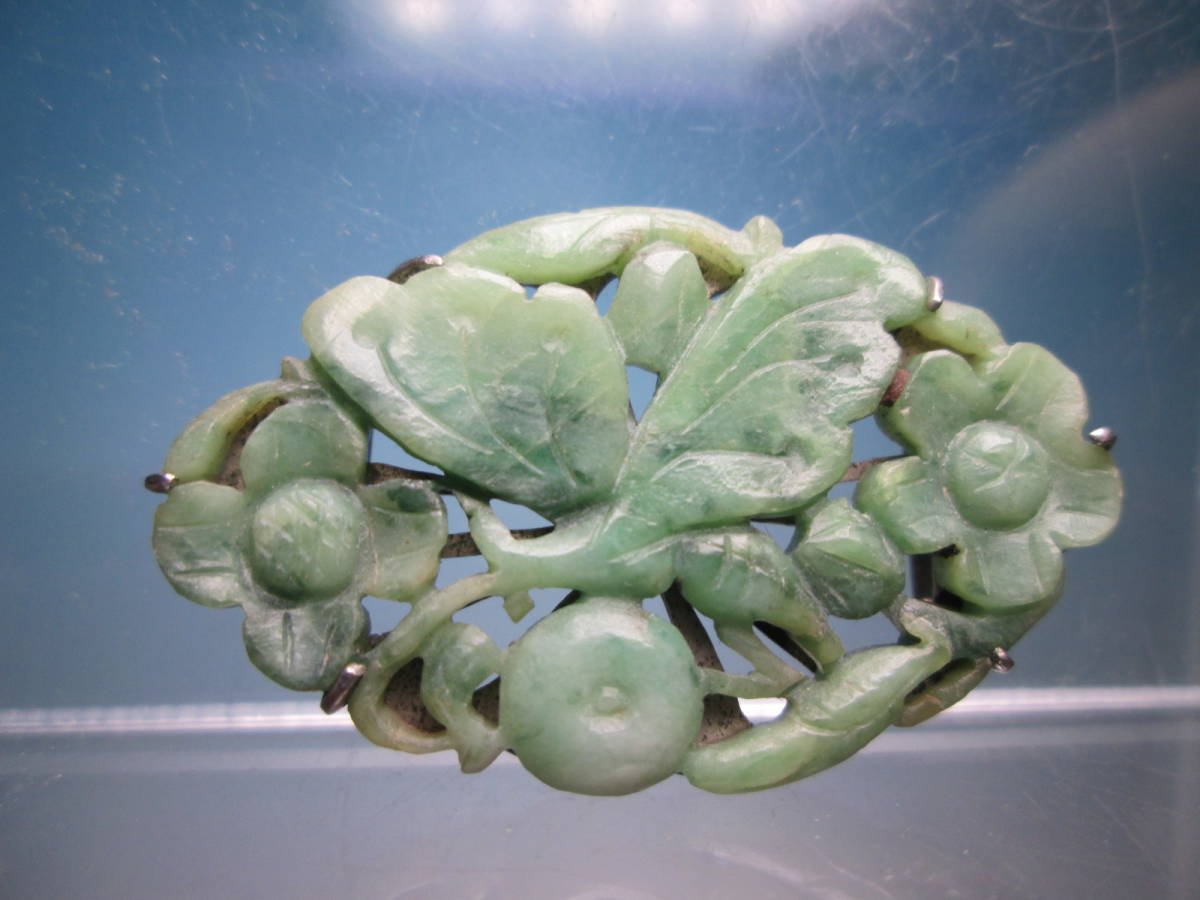 【江月】アンティーク・本翡翠 蝶と花透かし彫りの帯留め 5,96g