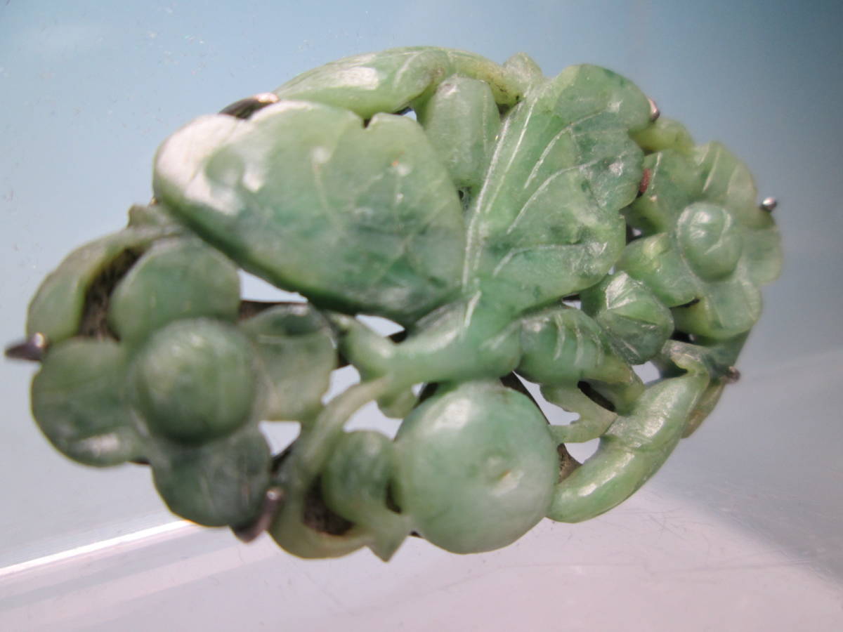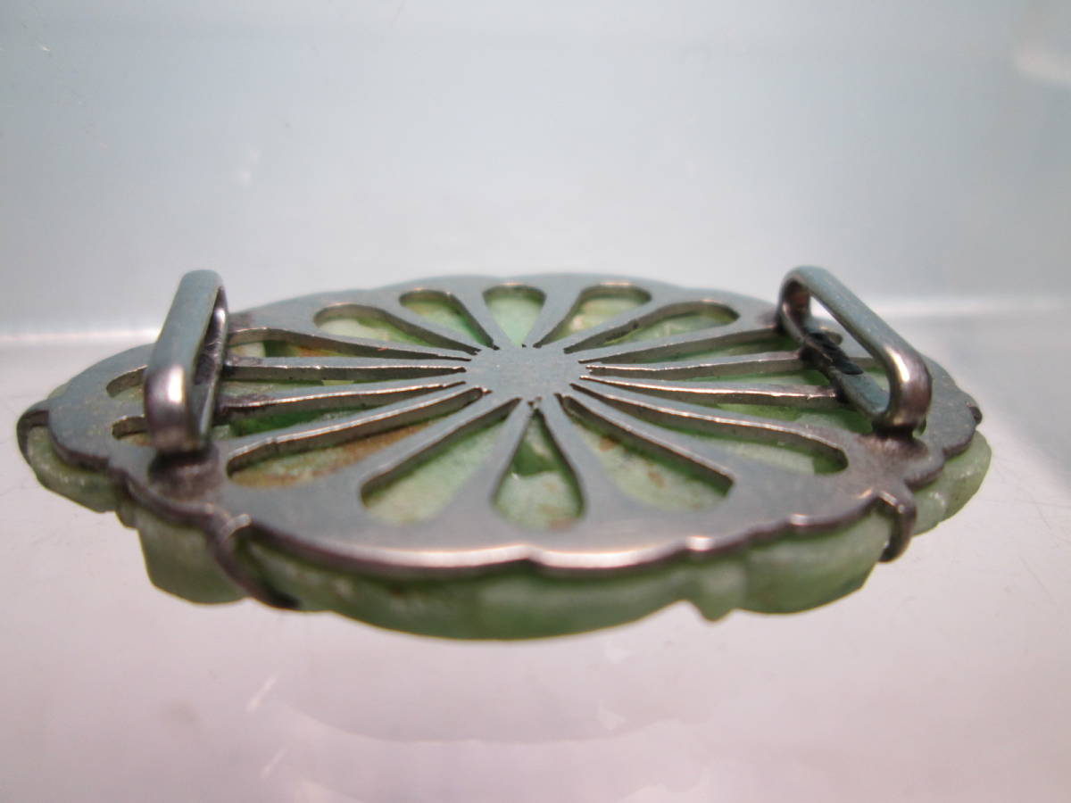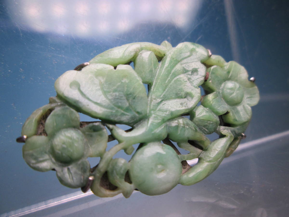 【江月】アンティーク・本翡翠 蝶と花透かし彫りの帯留め 5,96g