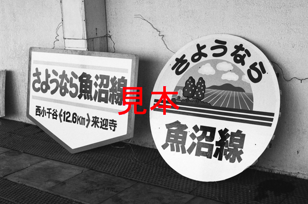 鉄道写真、35ミリネガデータ(JPEG)03846500015、さようなら魚沼線ヘッドマーク2種類です。