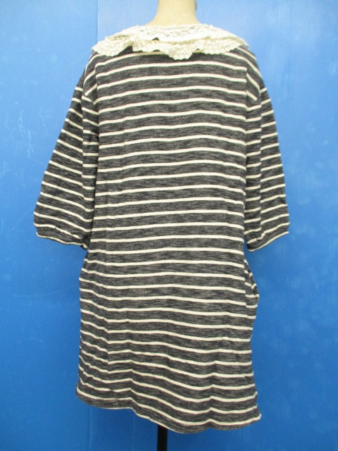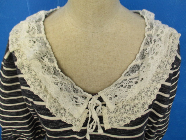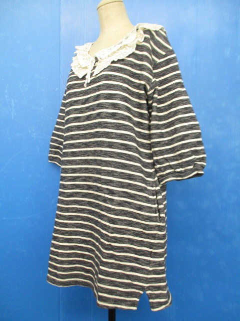 earth music & ecology/アースミュージック&エコロジー 七分袖チュニック 襟レース 紺/白ボーダー 大きめ/ゆったり