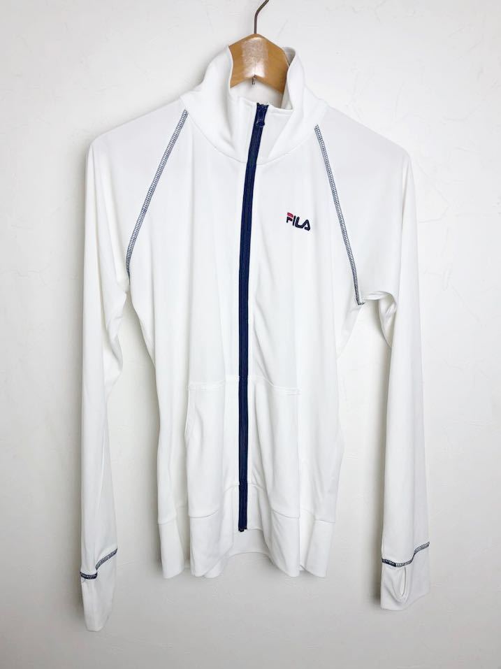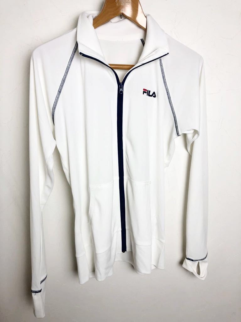春~夏の紫外線対策に人気のフィラ のラッシュガードです。プールや海はもちろん。ウオーキングや 散歩にもご使用いただけます。フルジップタイプで着脱しやすくとても使いやすいです。目立った汚れやダメージはありません。