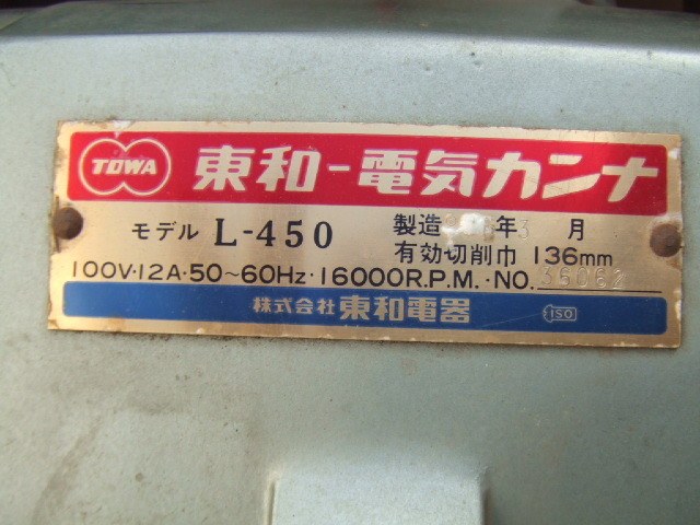 東和の136mm 電気カンナ モデル L-450の中古です