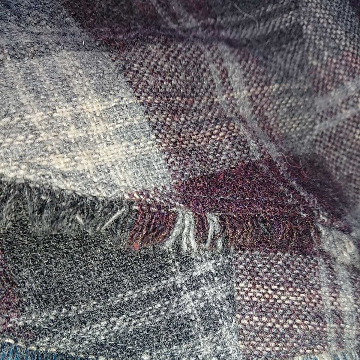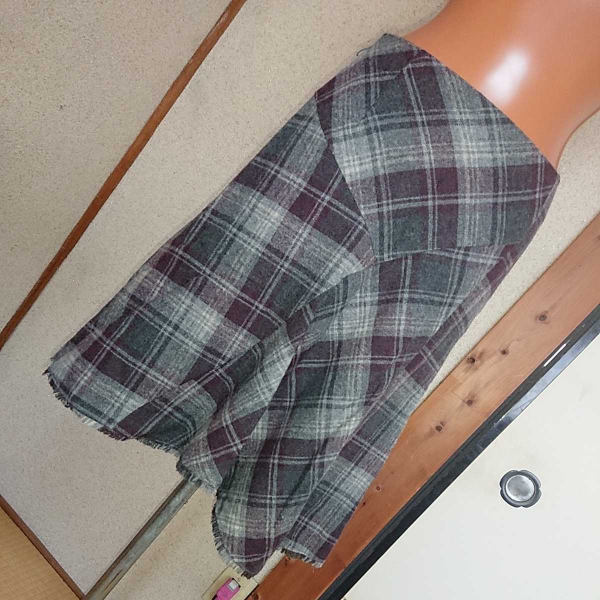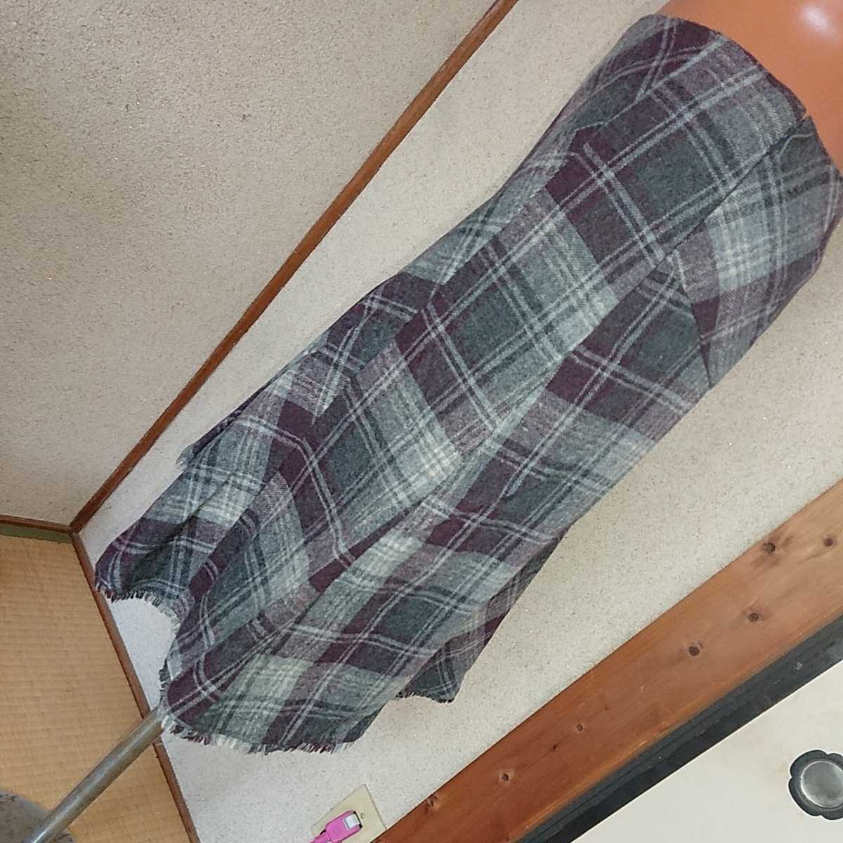 グレー系とワインカラーが大人っぽいチェック柄と裾フリンジがオシャレなひざ丈スカート。