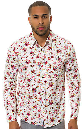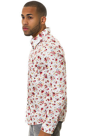 新品UK産 BELLFIELD Lancaster Shirt/ White ベルフィールド メンズ 長袖 ボタンシャツ L 花柄 総柄 バラ お洒落 ホワイト 白