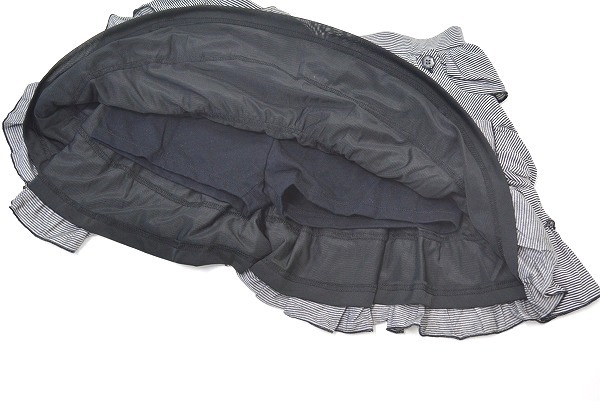 ・素材:指定外繊維(リヨセル)100%。 ・カラー:ブラック×ホワイト。 ・サイズ:F 。 実寸 ウエスト 約63cm・着丈 約34cm。(多少の誤差はお許しください) 細めのボーダー柄のフリルミニスカートです。 左右にポケット付き。中はインナー付きなので見える心配はありません。 フィット感高いので階段などでも安心です。 定価22050円(税込)。タグ付き。新品。 かなりお値打ちだと思います。この機会にぜひ!。 他にもいろいろ出品しています。 管理番号:201211YZ-062463 PD222505-200 ★ |