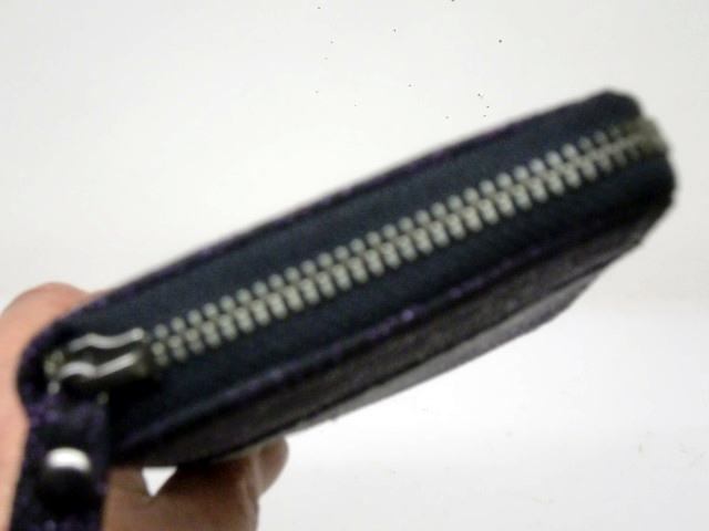 開閉口はファスナー、内にコインなど入れるファスナーポケット・しきりポケット・両サイドにカードが各6枚計12枚入るカードポケット・