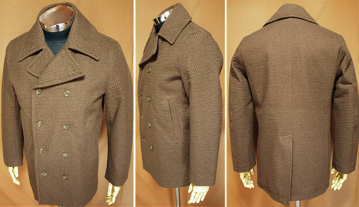 上品な色と素材!!ピーコート(Mサイズ)茶系xナナメ織り模様