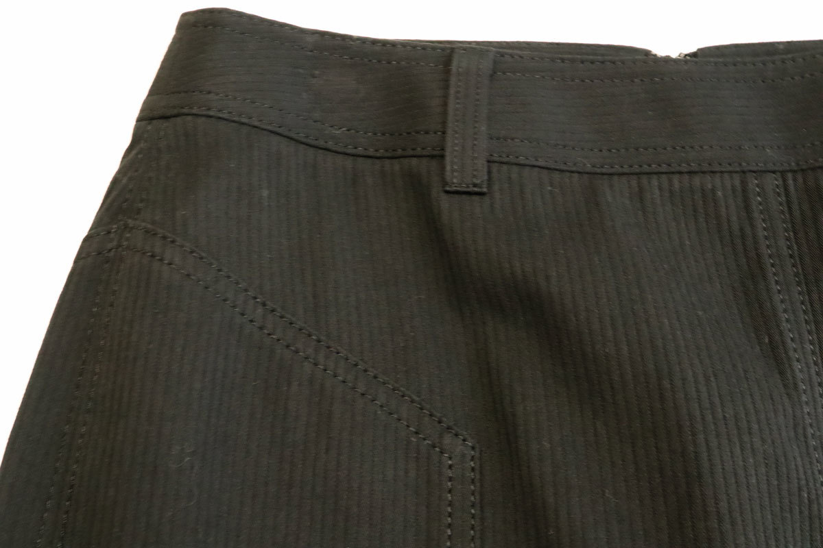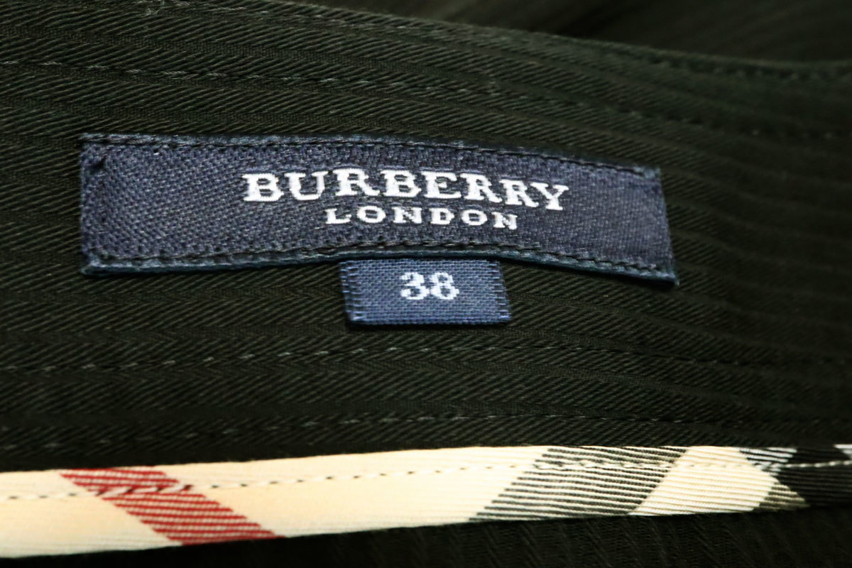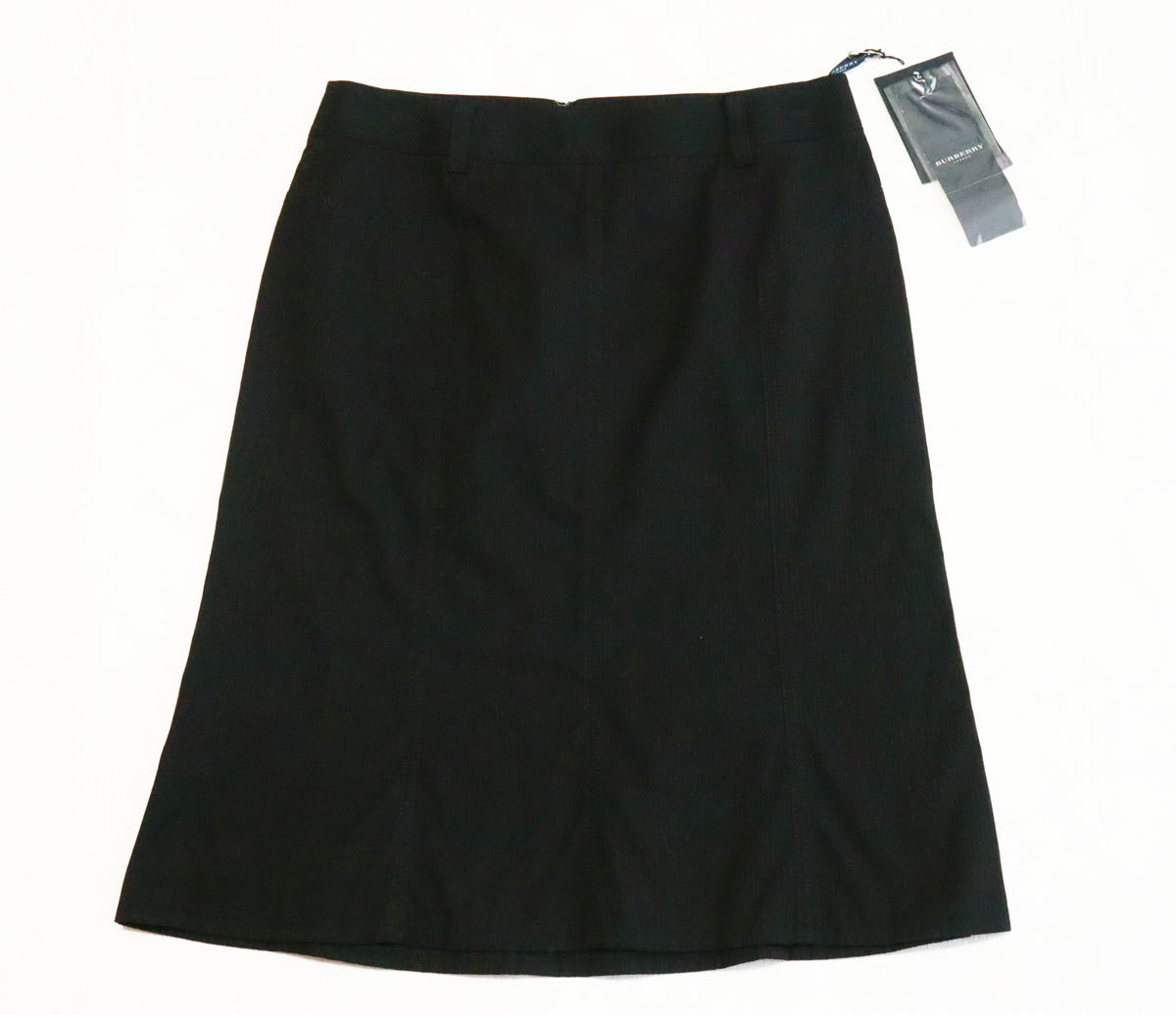 バーバリー(三陽商会)のひざ丈台形スカート。 11号サイズ、ウエスト67㎝です。 が、ヒップハング(腰でひっかけてお召いただくタイプ)ですので、 実寸としては、ウエスト74㎝ほどあります。 裏なしのサラリとした綿。 細く入った畝とスラッと見せてくれる切替がポイント。 裾のところでキュッと広がっているので足さばきがいいです。 おなじみのチェックは、裏のバイヤステープの部分にのみ使用されています。 ※三陽商会がバーバリー社とライセンス契約をしていた頃、正規のルートで仕入れたお品物です。 ◆素材:綿100 ◆実寸:ウエスト64(できあがり寸74) ヒップ93 総丈55(中央を測りました) ◆特徴:裏地なし 後ろファスナー スリットなし ベルト通しあり ◆生地:【ストレッチ】あり5-4-●-2-1なし 【厚さ】厚い5-4-3-●-1薄い ◆メーカー希望小売価格(税抜き):¥33000