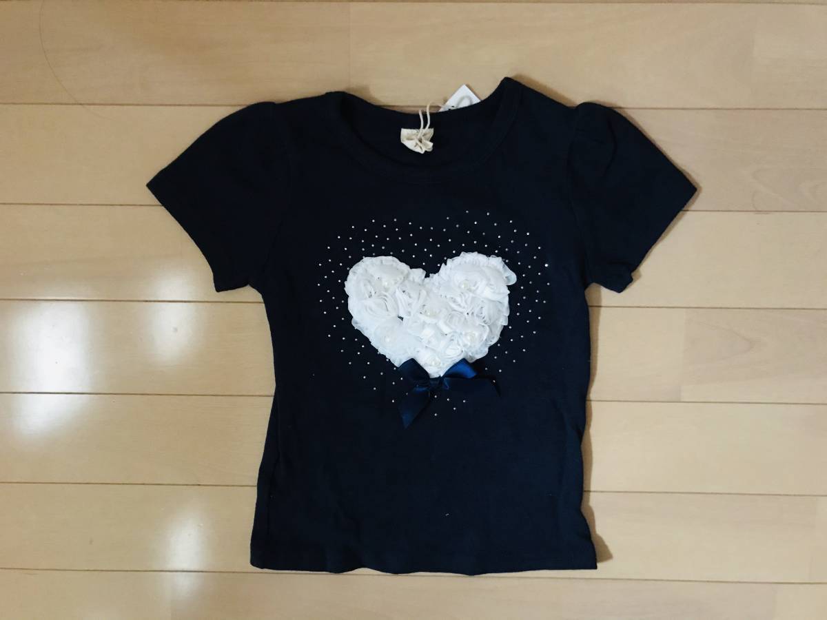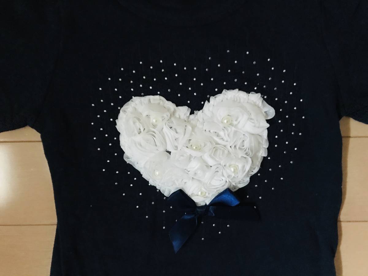 白のお花、ハート、リボン、キラキラストーン女の子の大好きがつまったTシャツです。