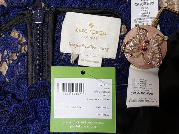 新品US0号/JP7号 Kate Spade Newyork ケイトスペード ニューヨーク ソー フォクシー バイカラー レース ミディ ドレス