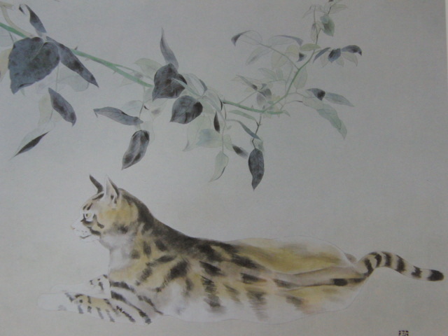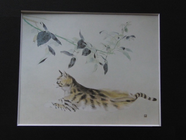 八田哲、【猫・夕】、希少な大判額装用画集より、美品、日本人画家、新品額装付、送料込み