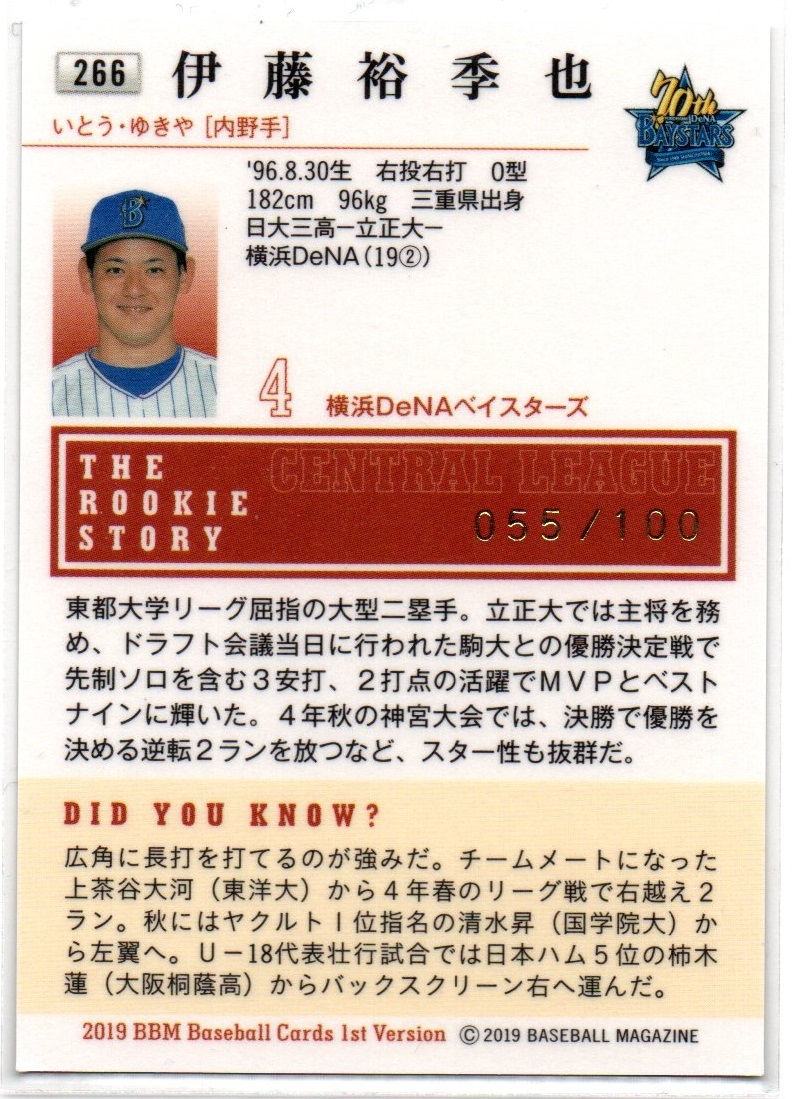 【伊藤裕季也(横浜DeNAベイスターズ)】2019 BBM 1st Version ホロ銀紙版ルーキーパラレルカード 【055/100】
