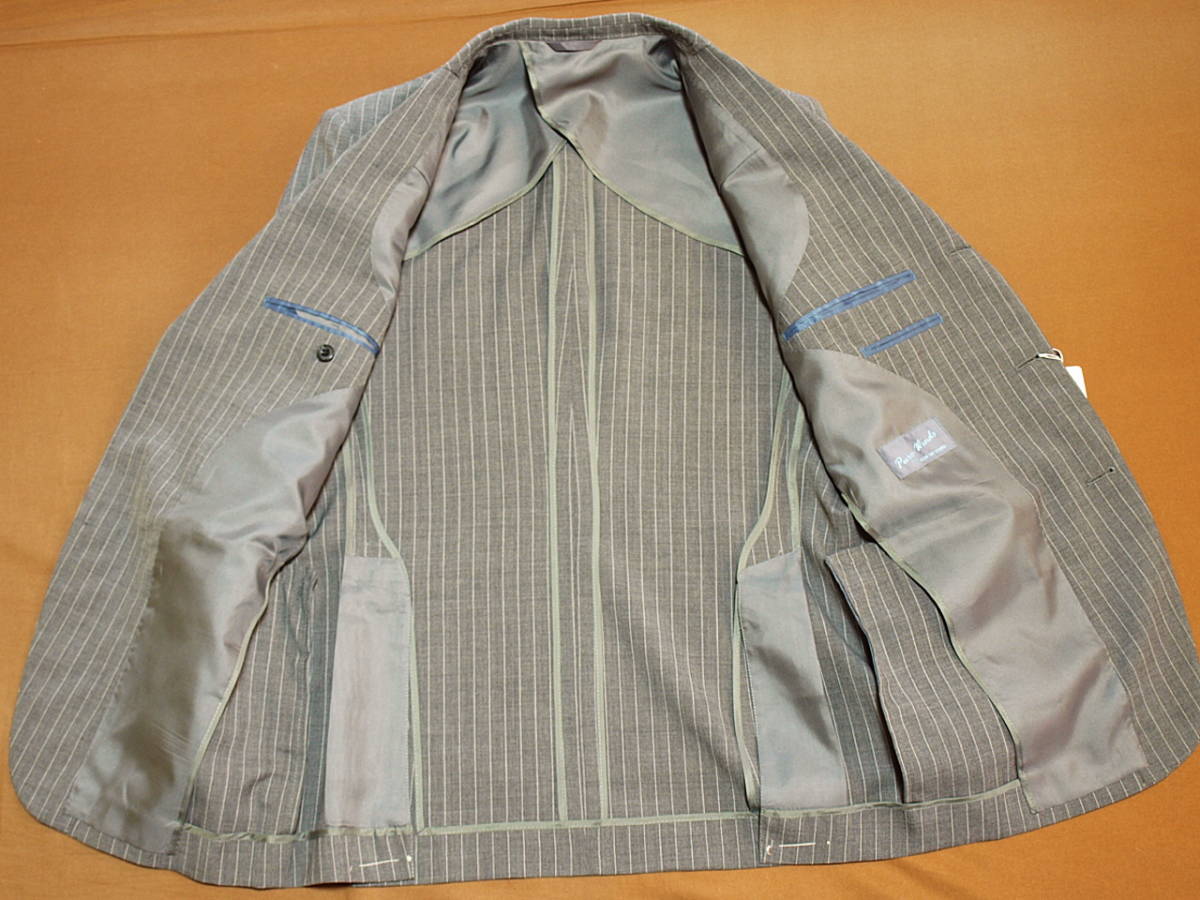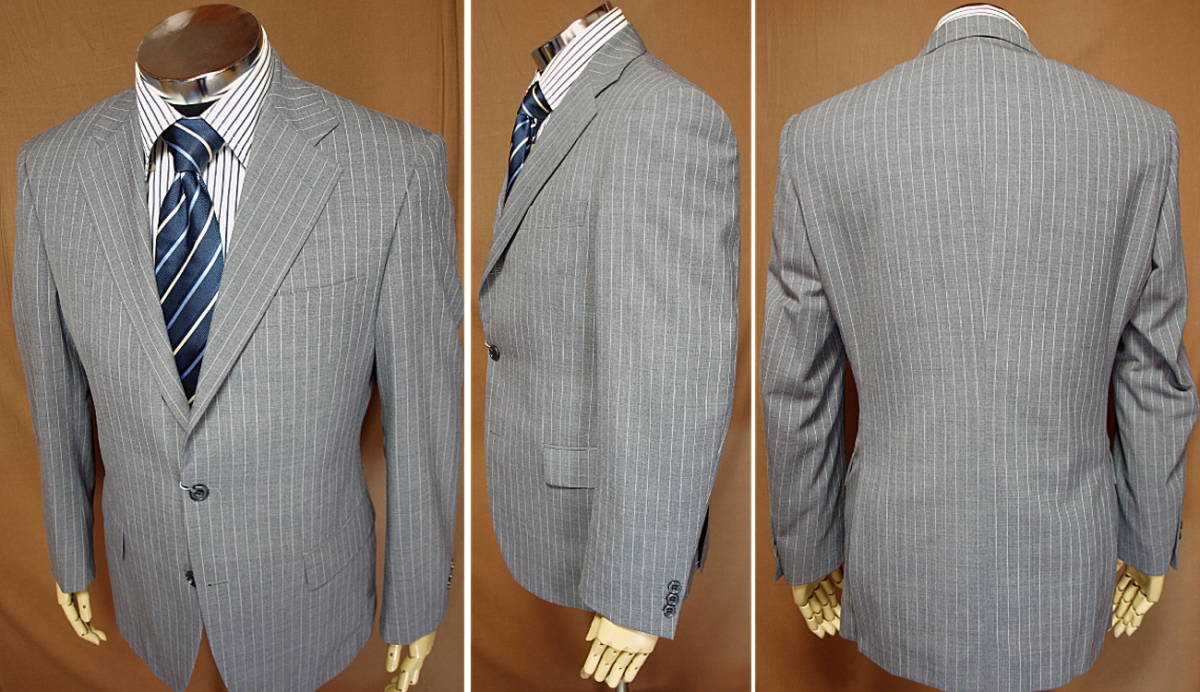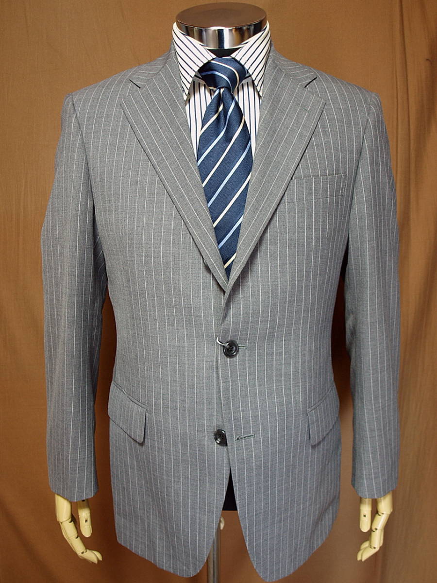 薄グレーxピンストライプ段返3ボタンスーツ(A5)通気性抜群生地