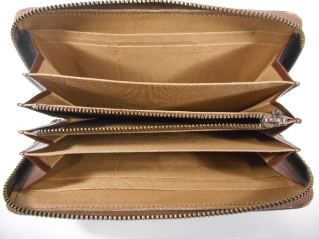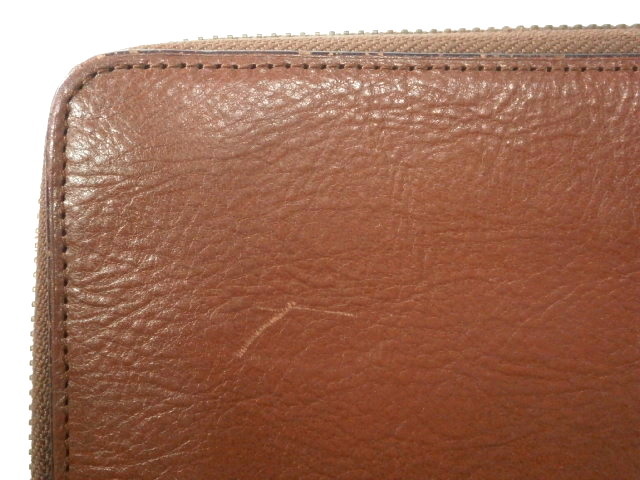 【Dacota】のラウンドファスナーの財布です。 茶系色のレザーで表側にロゴ文字があります。 あまり使用された感じではありませんが、 保管状態による表側表面の凹みがあり 表外側ポケット上端の黒いコーティングの 剥がれがあり、裏側に擦りキズがあります。 ファスナーに付けられたレザーは本体より 黒ずんだ感じになっています。 内部は小銭入れ部も含め、綺麗です。 サイズ : 長辺19cm×短辺11cm マチ幅2.3cm (素人採寸ですので多少の誤差はお許し下さい) デザイン : ラウンドファスナー開閉式 内部 マチ付フォープンポケット4個 マチ付ファスナーポケット1個 マチ無しオープンポケット2個 カード入れポケット6個 商品は検品していますが、見落としがある場合も ございます事、ご了承下さい。 出品している商品はすべて買い取り品又は委託品ですので ノークレーム、ノーリターンでお願い致します。 補償ありの発送の場合の梱包サイズは60です。 |