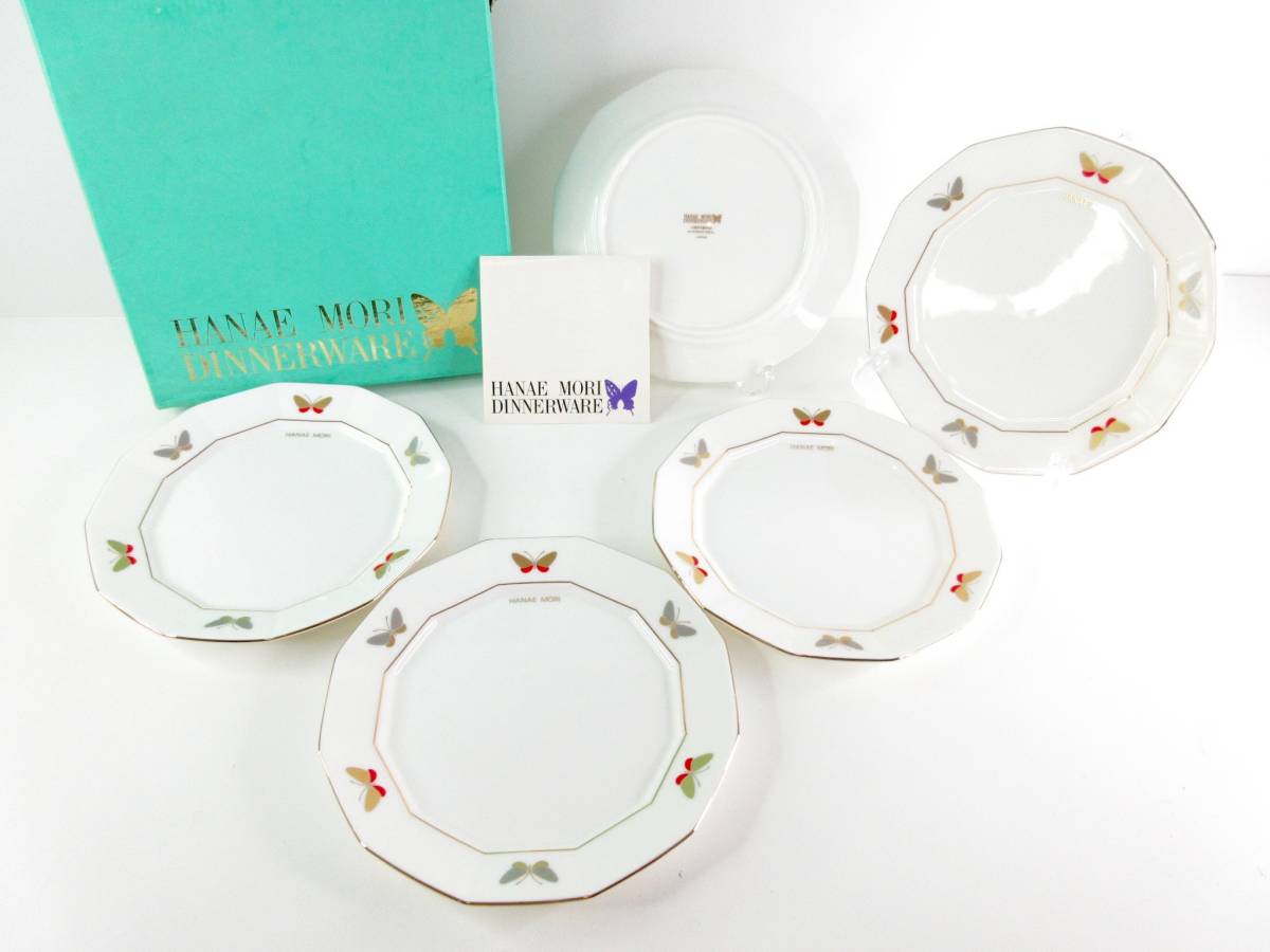 未使用品◆HANAE MORI ハナエモリ yamaka 山加 ファイブプチセット 15センチトレー 5枚セット 金彩 金縁 蝶々 小皿 プレート管理2002 N-7