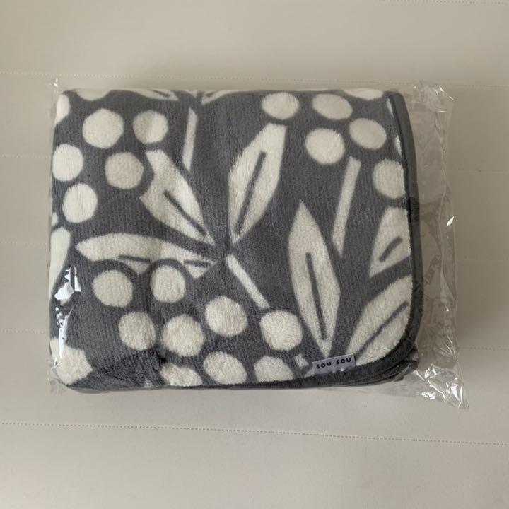 | 写真の柄のSOUSOUのフリースブランケット(ひざ掛け)。大きさ90cm×70cm。新品未使用品、三井住友信託銀行オリジナルの非売品。重量さ350g、宅配サイズ60。 |
