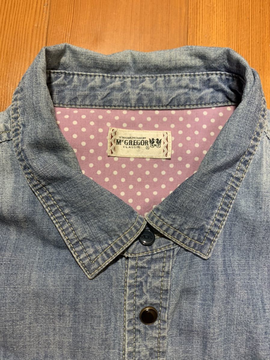 マックレガーのシャツです。ボタンを見ればメンズですが、デザイン的にどちらでも着用して頂けるのではないかと思います!