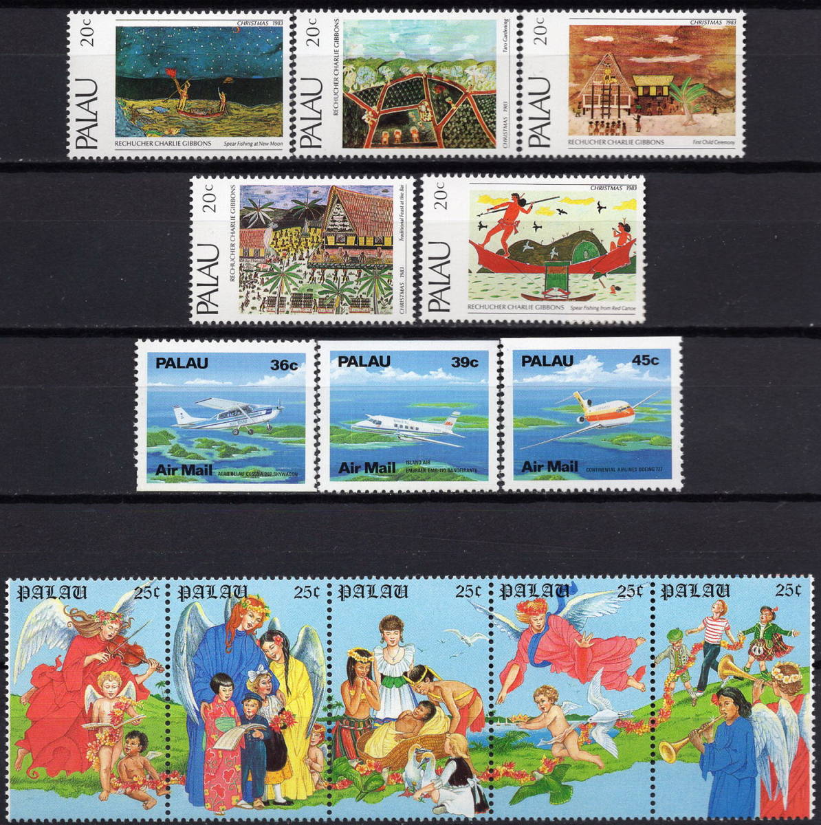 ★1983-88年 パラオ - 「「クリスマス」5種完+「航空機」航空切手3種完+「天使たちの歌」5種完 未使用(NH)★ZO-144