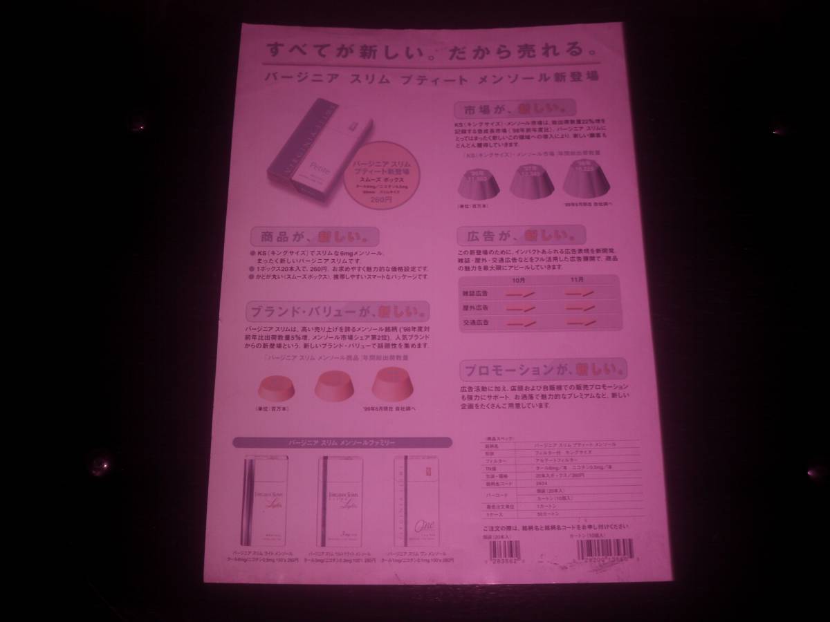 | 『 バージニア・スリム・ブティート・メンソール 新登場の案内 』 1999年 状態悪い です。 |